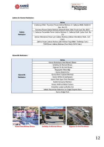 : Adres Sok. No:17) 15) Cad.) Cad.) : Adres Karesi Atatürk Evi Güvenlik Karesi Kent Toplum Merkezi Karesi Park Spor Toto Tesisleri Karesi AVM ve Nikah Salonu Emekliler Lokali ve Kültür Evi Karesi 12