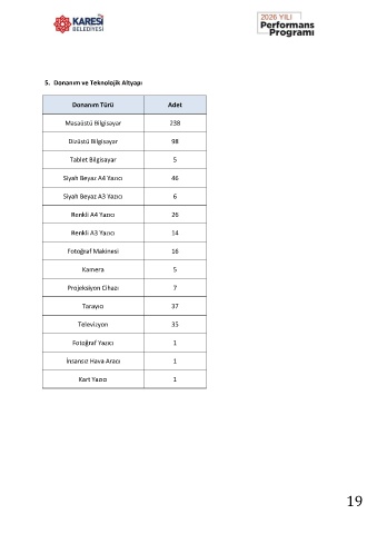 5. Adet Masaüstü Bilgisayar 238 Dizüstü Bilgisayar 98 Tablet Bilgisayar 5 46 6 26 14 16 Kamera 5 7 37 Televizyon 35 1 1 1 19