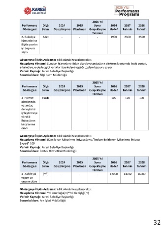 Performans Ölçü 2024 2025 Sonu 2026 2027 2028