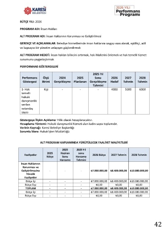 Faaliyetler 2026 Bütçe 2027 Tahmin 2028 Tahmin