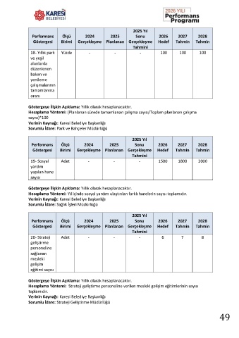 Performans Ölçü 2024 2025 Sonu 2026 2027 2028