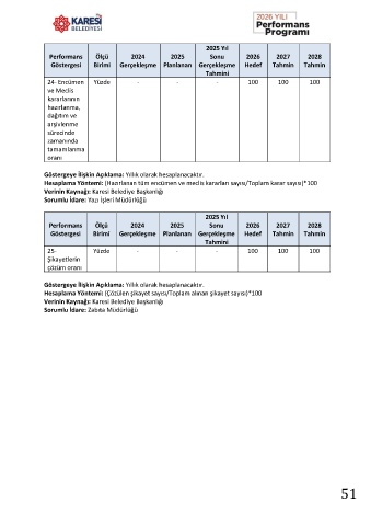 Performans Ölçü 2024 2025 Sonu 2026 2027 2028