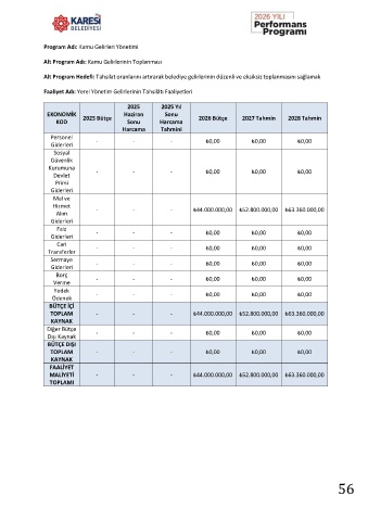 2025 Bütçe 2026 Bütçe 2027 Tahmin 2028 Tahmin
