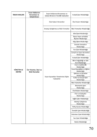 Özel Kalem Hizmetleri Özel Kalem Destek Hizmetleri Gençlik ve Spor Hizmetleri DESTEK Mali Hizmetler Kültür Faaliyetler Park ve Bahçeler 70