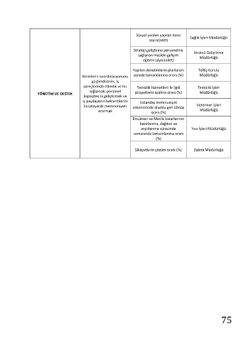 (adet) Birimlerin koordinasyonunu Temizlik hizmetleri ile ilgili kapasitesini M (%) 75